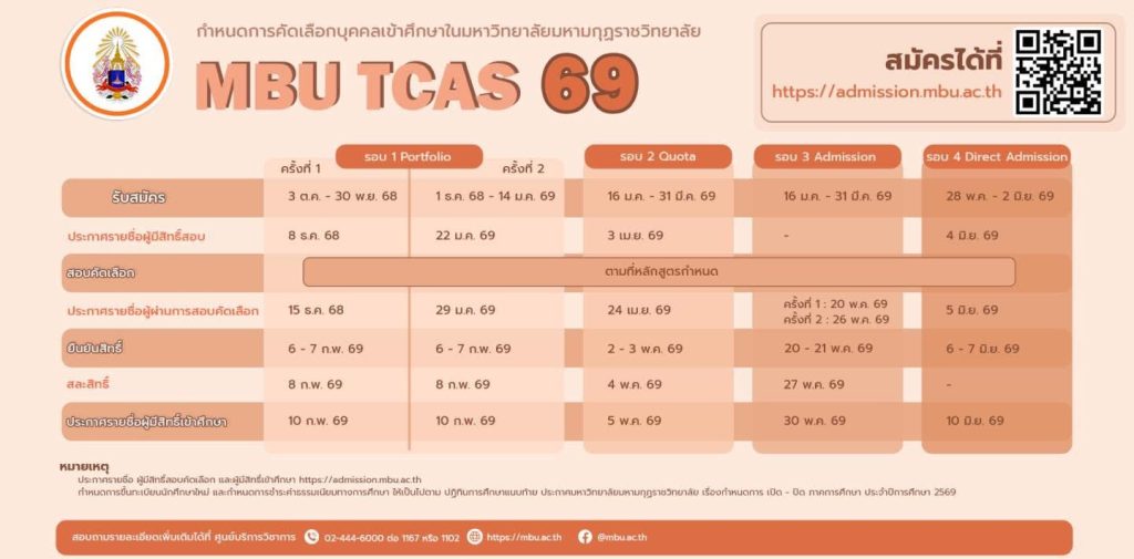 ปฏิทินการรับสมัครนักศึกษาใหม่ (TCAS) ประจำปีการศึกษา 2569